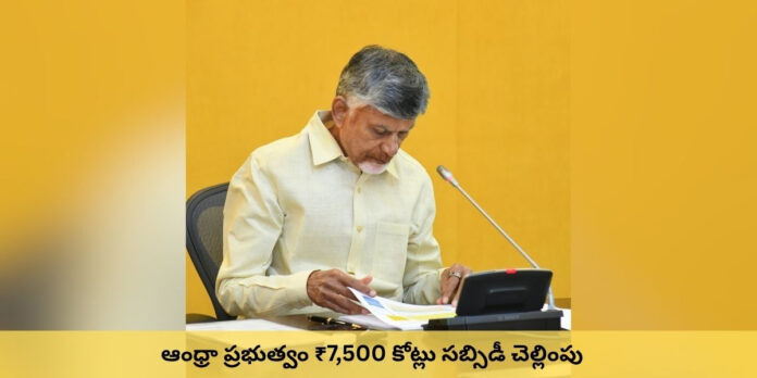ఆంధ్రప్రదేశ్ ముఖ్యమంత్రి చంద్రబాబు నాయుడు నేతృత్వంలోని ప్రభుత్వం ₹7,500 కోట్ల సబ్సిడీ బకాయిలను క్లియర్ చేయనున్నది.