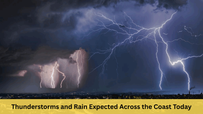 RMC Chennai issues alert for thunderstorms and heavy rain in Tamil Nadu and Puducherry. Lightning, squalls, and low-pressure system warnings issued.