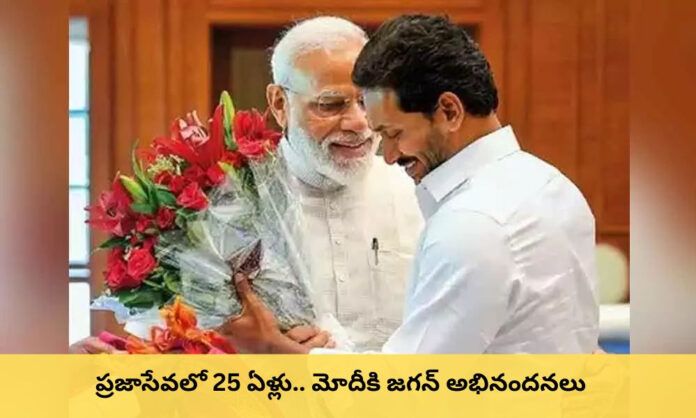 మోదీ 25 ఏళ్ల పాలనకు జగన్ ఘనంగా శుభాకాంక్షలు |