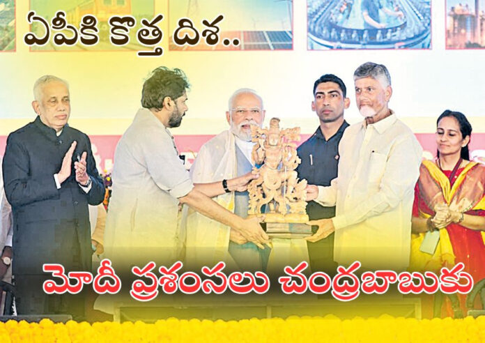 కూటమి ప్రభుత్వ హయాంలో ఆంధ్రప్రదేశ్‌ అభివృద్ధి ముఖచిత్రం మారుతోందని ప్రధానమంత్రి నరేంద్ర మోదీ వ్యాఖ్యానించారు. చంద్రబాబు నాయుడు నేతృత్వంలో రాష్ట్రం సరికొత్త శక్తిగా అవతరించబోతోందని ఆయన ప్రశంసించారు.