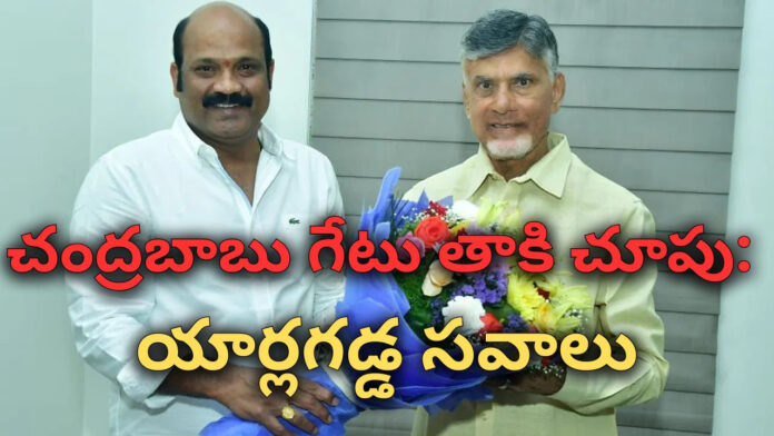 ‘‘దమ్ముంటే మళ్లీ చంద్రబాబు ఇంటి గేటును తాకి చూపు’’ అంటూ ఆయన వ్యాఖ్యానించారు. మంగళగిరిలోని తెదేపా కేంద్ర కార్యాలయంలో పెడన ఎమ్మెల్యే కాగిత కృష్ణప్రసాద్తో కలిసి మీడియాతో మాట్లాడిన యార్లగడ్డ, వైకాపా నేతల అవినీతి, అరాచక పాలనపై తీవ్ర విమర్శలు చేశారు.