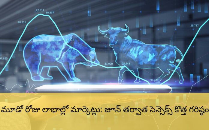 భారతీయ బెంచ్‌మార్క్ సూచీలు సెన్సెక్స్ మరియు నిఫ్టీ 50 వరుసగా మూడవ రోజు కూడా లాభాలతో ముగిసి, మదుపరులకు ఊరటనిచ్చాయి.
