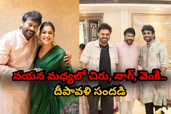 ఒకే ఫ్రేమ్లో చిరు, నాగ్, వెంకీ మధ్య నయనతార కనిపించడం అభిమానులను ఆనందానికి గురిచేసింది. మెగా ఫ్యామిలీ సభ్యులు, పలువురు ప్రముఖులు పాల్గొన్న ఈ వేడుకలో సంప్రదాయ దుస్తుల్లో తారలు మెరిశారు. చిరంజీవి కుటుంబం నిర్వహించిన ఈ వేడుక సోషల్ మీడియాలో వైరల్ అవుతోంది.