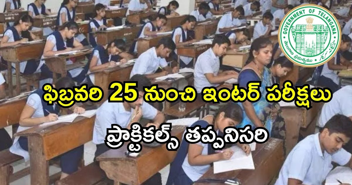 తెలంగాణలో ఇంటర్ పరీక్షల తేదీలు ఖరారయ్యాయి. ఫిబ్రవరి 25 నుంచి మార్చి 18 వరకు పరీక్షలు నిర్వహించనున్నట్లు ఇంటర్ బోర్డు ప్రకటించింది.