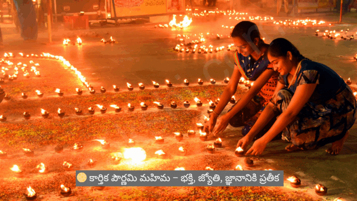 తరచుగా ప్రకాశించే చంద్రుని ఈ ప్రత్యేక రాత్రి, కార్తిక పౌర్ణమి, భక్తి, ఆధ్యాత్మికత, మరియు జ్ఞానానికి ప్రతీకగా వెలుగుతుంది. కార్తిక మాసంలో వచ్చే ఈ పౌర్ణమి, హిందూ ధర్మంలో అత్యంత పవిత్రంగా పరిగణించబడుతుంది.