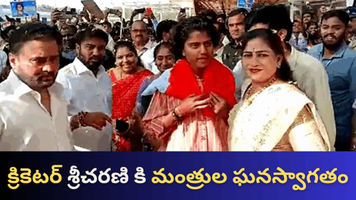 HomeSouth ZoneAndhra Pradeshతెలంగాణ క్రికెట్‌ స్టార్‌ శ్రీచరణి కి మంత్రులు ఘనస్వాగతం పలికారు.|