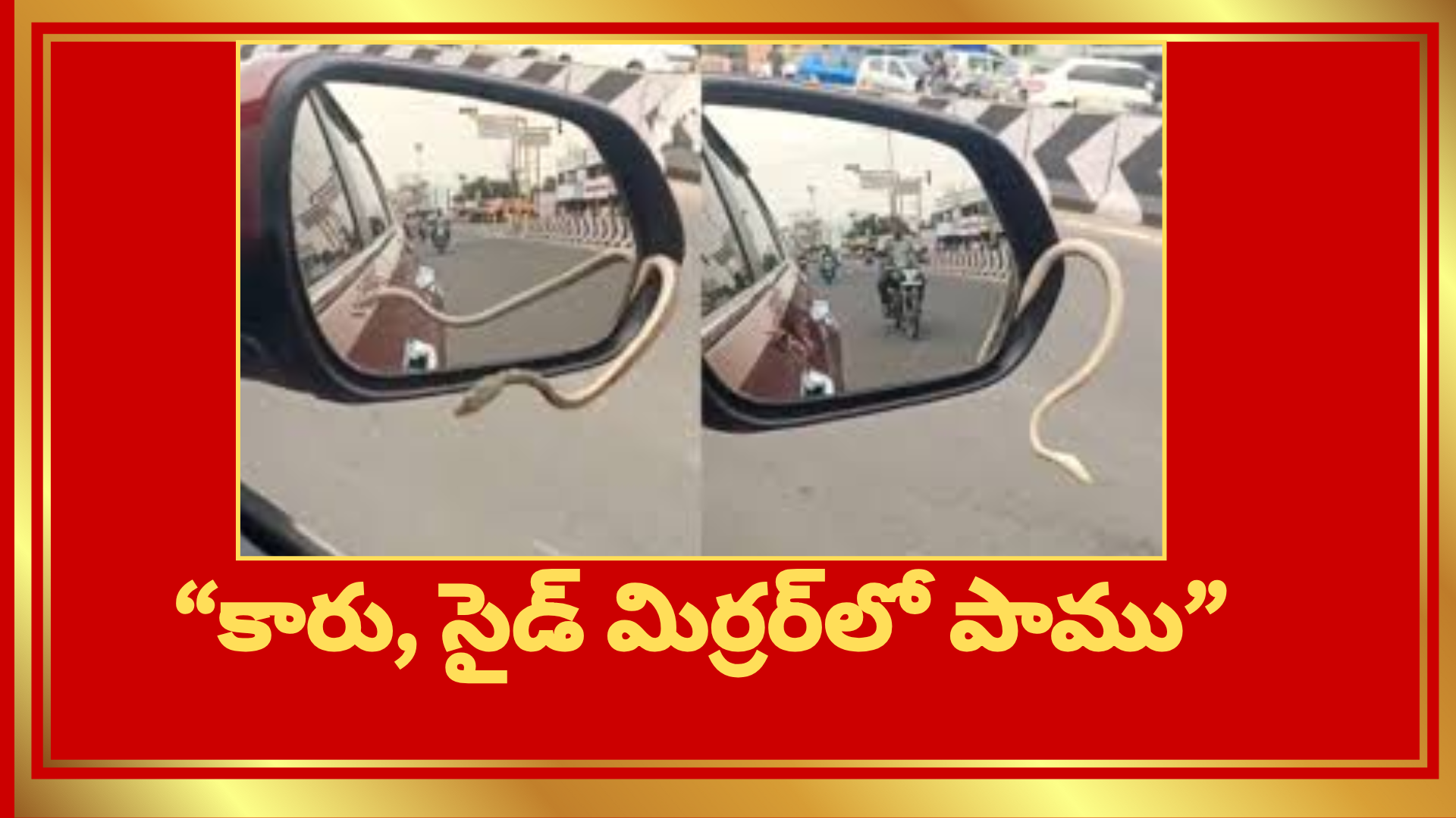 తాజాగా బెంగుళూరులో షాకింగ్ ఘటన చోటుచేసుకుంది. నామక్కల్ సాలెం రోడ్డుపై వెళ్తున్న వ్యక్తి కారులో ఉన్నపుడు సైడ్ మిర్రర్ నుంచి ఒక్కసారిగా పాము బయటకు వచ్చింది. భయంతో అతడు కారు పక్కన ఆపి దిగాడు.