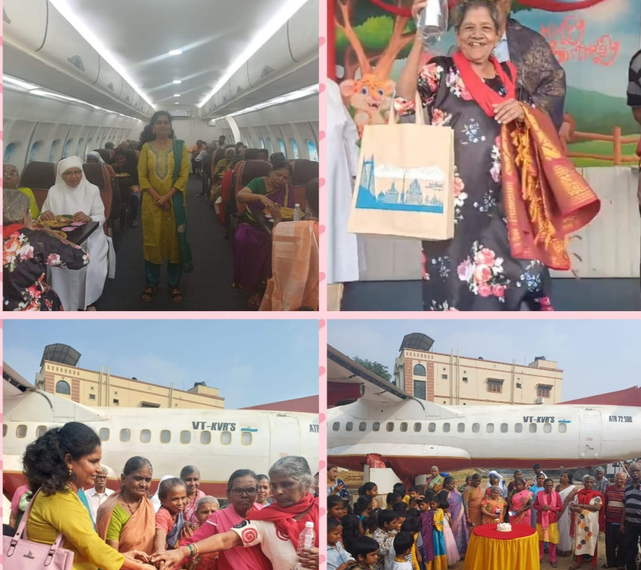 అలాగే పేద విద్యార్థులను ఆనందపరచడానికి వారు ఊహించని విధంగా ప్రత్యేక కార్యక్రమం కోసం గురువారం దుండిగల్ లోని కదిలే విమాన హోటల్ (ఫ్లైట్ రెస్టారెంట్ మూవింగ్ హోటల్) కు తీసుకువెళ్ళి. వయోధికులు, పేదపిల్లలు ఆనందంగా పాల్గొనే విధంగా చిన్న చిన్న ఆటలు, వినోదాత్మక కార్యక్రమాలు, పాటలు నిర్వహించారు.