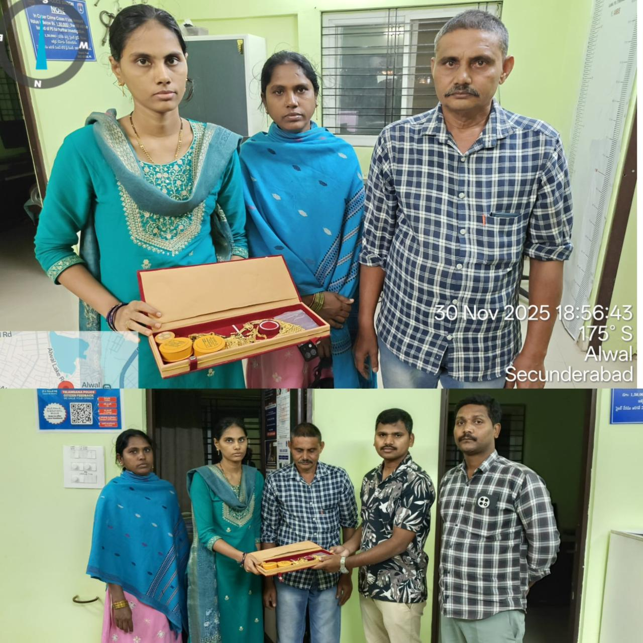 బాధితురాలుకు సంబంధించిన బ్యాగును మరియు అందులో ఉన్న 18 తులాల విలువైన బంగారు నగలను సదరు బాధితురాలికి అప్పగించారు.