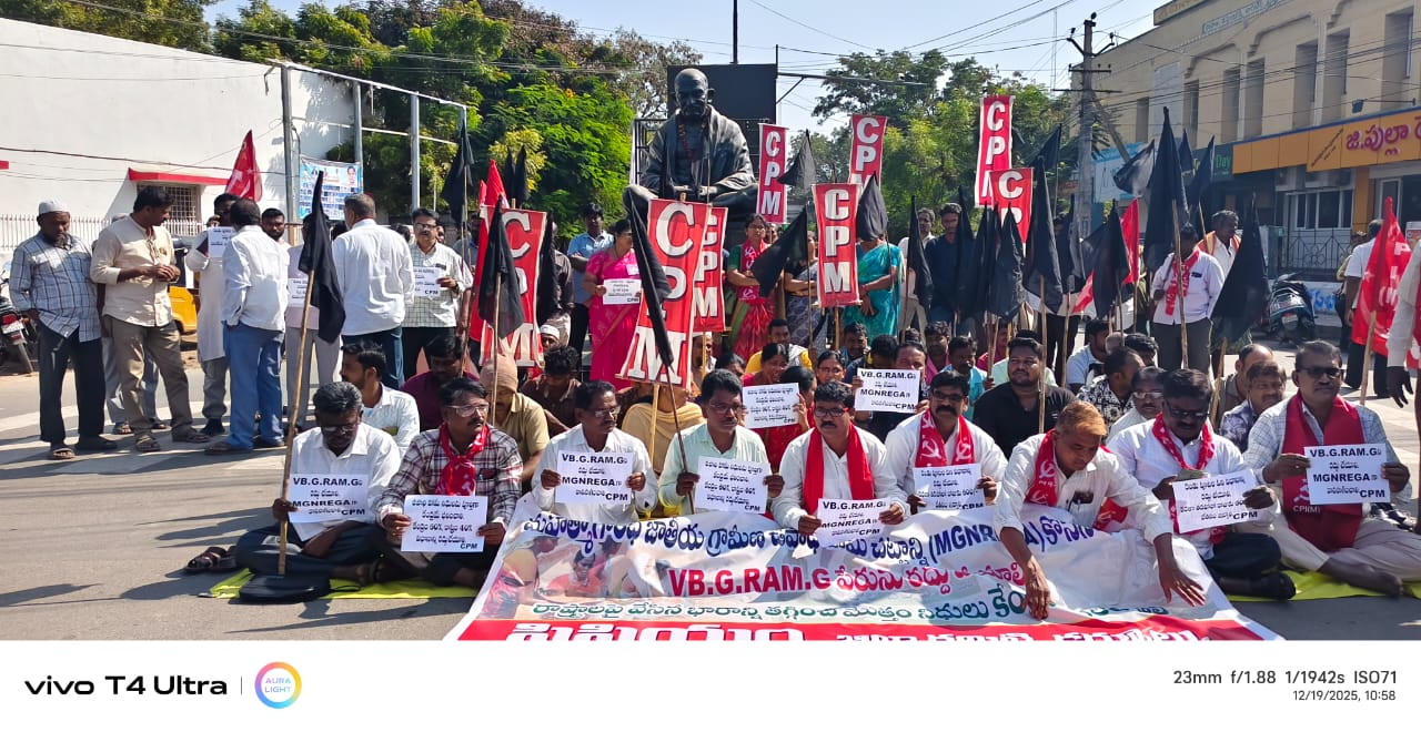 మహాత్మా గాంధీ జాతీయ గ్రామీణ ఉపాధి హామీ చట్టం స్థానంలో తెచ్చిన విబి జి రామ్ జి స్కీమ్ రద్దు చేయాలని, 2005లో వామపక్షాల వత్తిడితో యూపీఏ వన్ ప్రభుత్వం తెచ్చిన మాత్మ గాంధీ జాతీయ గ్రామీణ ఉపాధి హామీ చట్టాన్ని కేంద్రంలో మోడీ నాయకత్వంలో ఉన్న బిజెపి ప్రభుత్వం నిర్వీర్యం చేసే కుట్రలను తిప్పి కొట్టాలని, ప్రజలకు సిపిఎం పార్టీ విజ్ఞప్తి చేస్తుందని సిపిఎం పార్టీ జిల్లా కార్యదర్శి గౌస్ దేశాయ్ ప్రజలకు పిలుపునిచ్చారు.
