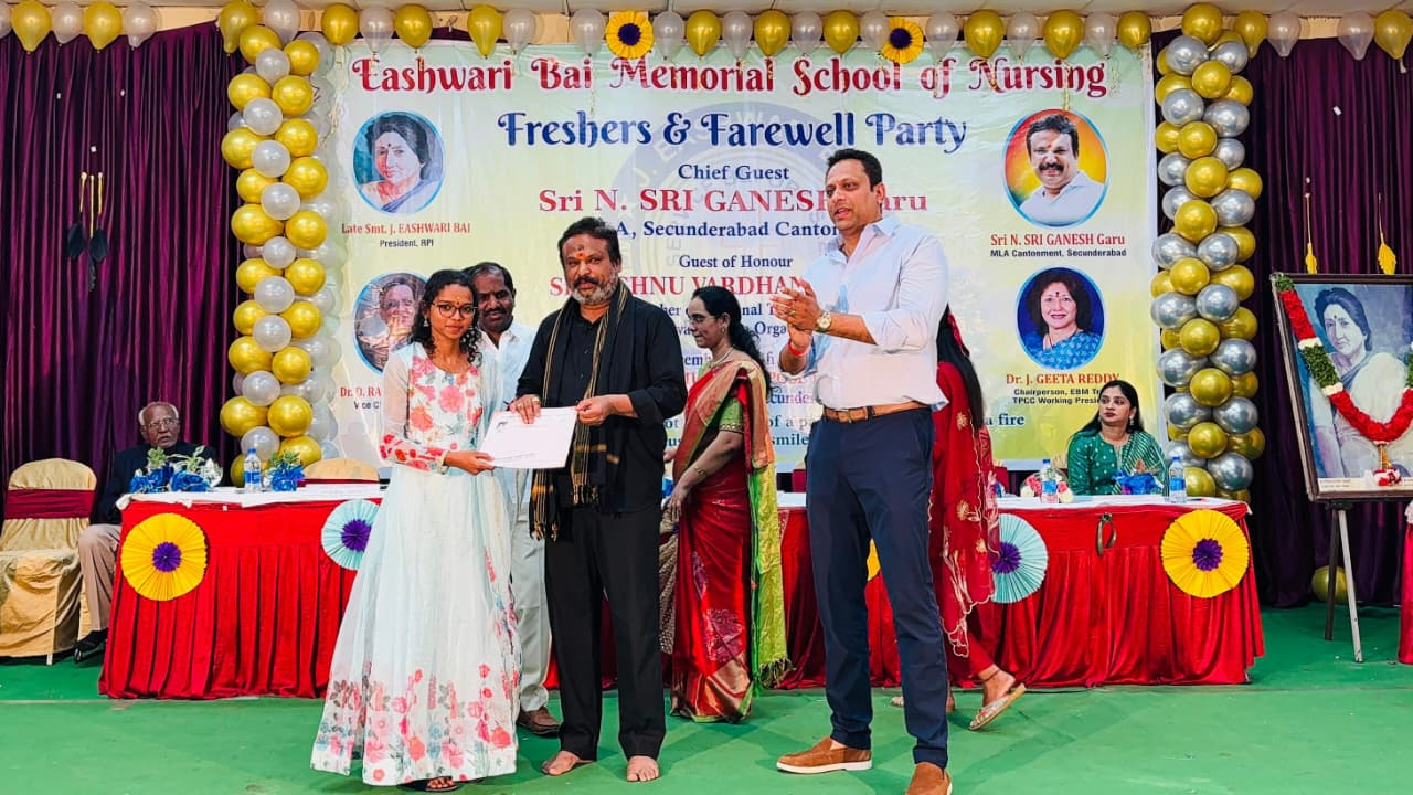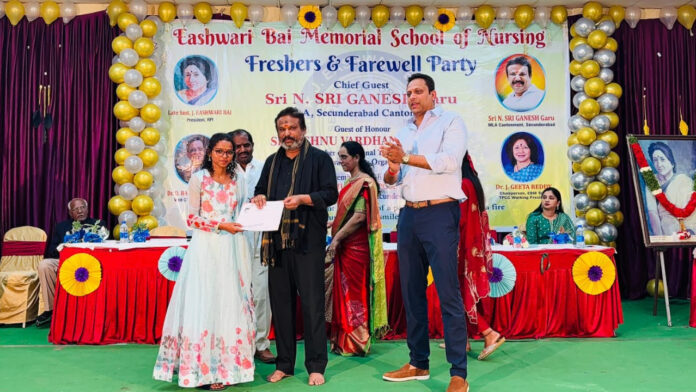 మేడ్చల్ మల్కాజ్గిరి జిల్లా : ఈశ్వరీ బాయి మెమోరియల్ స్కూల్ ఆఫ్ నర్సింగ్ కళాశాల ఫేర్ వెల్ & ఫ్రెషర్స్ డే వేడుకలు శుక్రవారం మారేడ్ పల్లి మల్టీ పర్పస్ ఫంక్షన్ హాల్ లో కళాశాల యాజమాన్యం వారు నిర్వహించారు . ఈ వేడుకలకు యాజమాన్యం ఆహ్వానం మేరకు కంటోన్మెంట్ ఎమ్మెల్యే శ్రీగణేష్ ముఖ్య అతిథిగా హాజరయ్యారు.