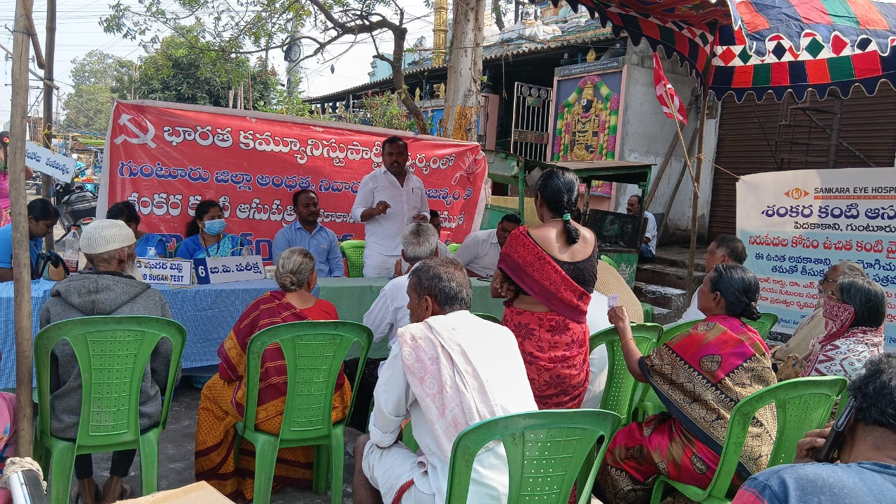 ప్రజలు ఉచిత వైద్య శిబిరాలను సద్వినియోగపర్చుకోవాలని వారు పిలుపునిచ్చారు. డాక్టర్ రవికుమార్ ఆధ్వర్యంలో విచ్చేసినటువంటి వైద్యుల బృందం ప్రజలకు బిపి,షుగర్, కంటి పరీక్షలు నిర్వహించారు.ఈ కార్యక్రమంలో నగర కమిటీ సభ్యులు నూతలపాటి చిన్న, నగర సమితి సభ్యులు చినపోతుల వెంకటరావు, అఖిల భారత యువజన సమాఖ్య అధ్యక్షులు శ్రీనివాస్ తదితరులు పాల్గొన్నారు.