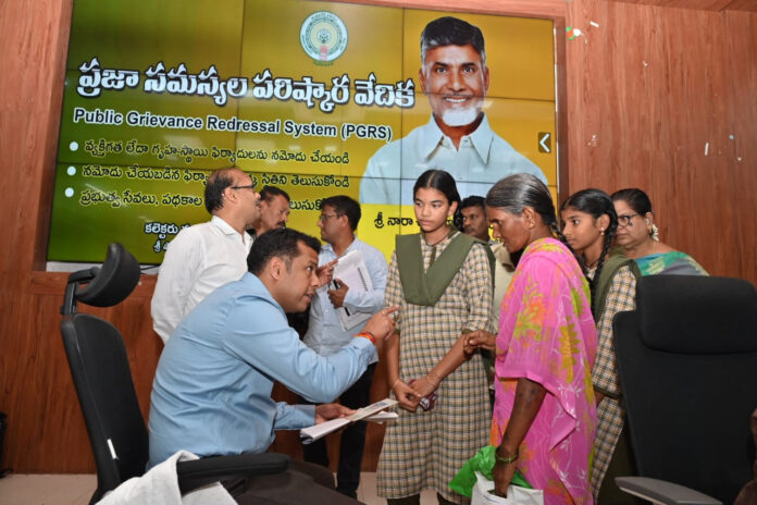 సోమవారం(22/12/2025) స్థానిక కలెక్టర్ కార్యాలయంలోని తిక్కన ప్రాంగణంలో ప్రజా సమస్యల పరిష్కార వేదిక కార్యక్రమంలో భాగంగా అర్జీదారుల నుండి అర్జీలు స్వీకరిస్తున్న జిల్లా కలెక్టర్ హిమాన్షు శుక్లా, జాయింట్ కలెక్టర్ మొగిలి వెంకటేశ్వర్లు, జిల్లా రెవిన్యూ అధికారి విజయకుమార్, జిల్లా పరిషత్ ముఖ్య కార్యనిర్వహణాధికారి శ్రీధర్ రెడ్డి, డిపిఓ వసుమతి, డ్వామా పిడి గంగాభవాని తదితరులు