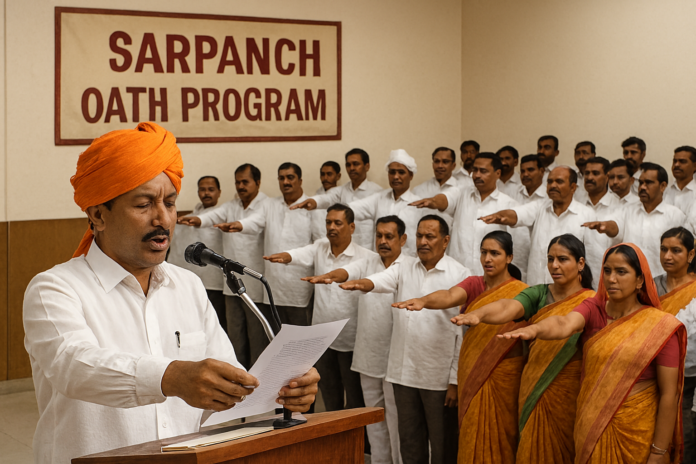 The new Sarpanchas and Vice Sarpanchas who won the recent grama panchayt elections took oath in their grama panchyats, while those who took office today said that they will work for the development of the village in accordance with the law.