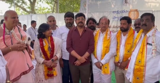 భూమి పూజ కార్యక్రమంలో…. మాజీ మంత్రి పిన్నమనేని వెంకటేశ్వరరావు, అక్షయపాత్ర ఫౌండేషన్ ప్రతినిధులు గోపాల శాస్త్రి గోవింద, పాల్గుణ దాస,
