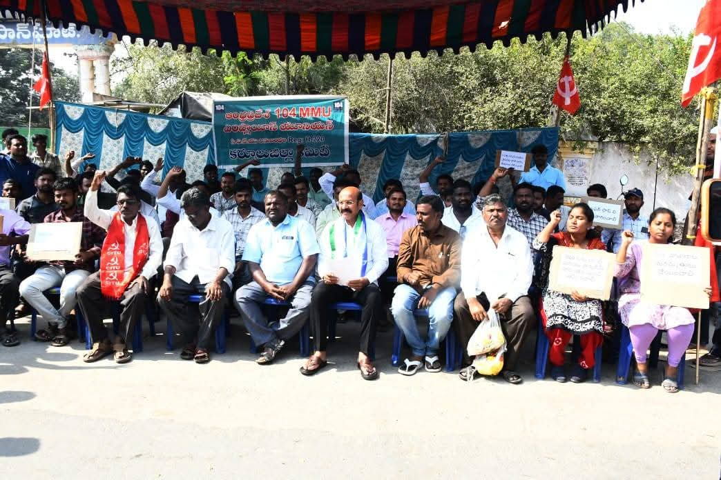 ఉద్యోగ భద్రత కల్పించాలి, PF, ESI వంటి చట్టబద్ధ హక్కులు అమలు చేయాలని డిమాండ్ చేశారు. కార్మికుల హక్కుల కోసం వైఎస్ఆర్సిపి ఎప్పుడూ ముందుండి పోరాటం చేస్తుందని, అవసరమైతే రాష్ట్రవ్యాప్తంగా ఉద్యమాలు చేపడతామని హెచ్చరించారు.ఈ ధర్నాలో 104 MMU ఉద్యోగులు, యూనియన్ నాయకులు, వైఎస్ఆర్సిపి నాయకులు పాల్గొని కార్మికులకు మద్దతు తెలిపారు.