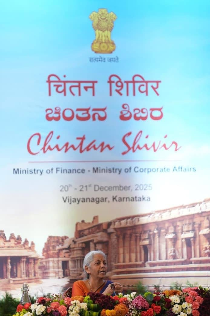 VIJAYANAGARA, KARNATAKA — Union Minister for Finance and Corporate Affairs, Smt. Nirmala Sitharaman,chaired a high-level ‘Chintan Shivir’ in the historic city of Vijayanagara, Karnataka, this Sunday. The brainstorming session, attended by Union Minister of State for Corporate Affairs Shri Harsh Malhotra and senior officials, focused on aligning national economic policies with the vision of #ViksitBharat.