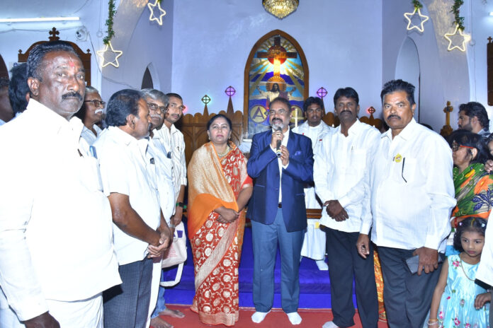 చీరాల: యేసుక్రీస్తు జన్మదినాన్ని పురస్కరించుకుని చీరాల పట్టణంలోని సెయింట్ మార్క్స్ సెంటెనరీ లూథరన్ చర్చిలో నిర్వహించిన ప్రత్యేక క్రిస్మస్ వేడుకల్లో లోక్ సభ ప్యానల్ స్పీకర్ మరియు బాపట్ల పార్లమెంట్ సభ్యులు శ్రీ తెన్నేటి కృష్ణప్రసాద్ గారు సతీమణి శిరీష కుమారి గారితో కలిసి పాల్గొని ప్రత్యేక ప్రార్థనలు నిర్వహించారు.