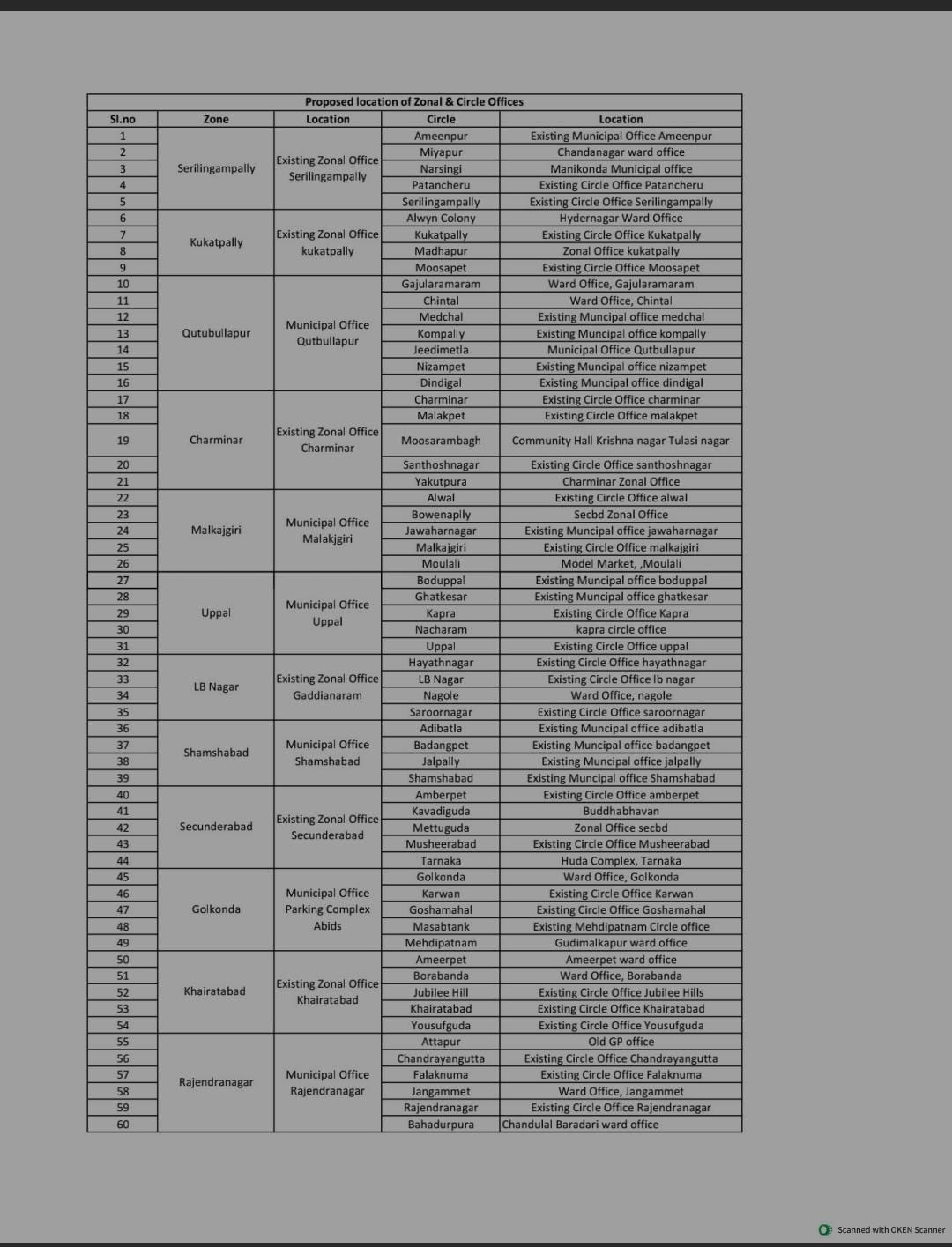 కొత్త జోన్లుగా ఉప్పల్, కుత్బుల్లాపూర్, మల్కాజ్గిరి, శంషాబాద్, గోల్కొండ, రాజేంద్రనగర్.