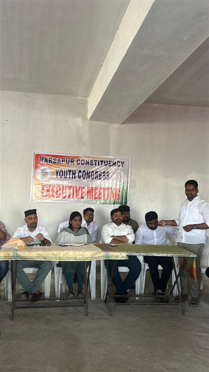 మెదక్ జిల్లా యూత్ కాంగ్సెస్ అసెంబ్లీ అధ్యక్షులు చార్ల సందీప్ గారి అధ్యక్షతన నర్సాపూర్ నియోజకవర్గంలో యూత్ కాంగ్రెస్ ఎగ్జిక్యూటివ్ మీటింగ్ ఘనంగా నిర్వహించబడింది తెలంగాణ రాష్ట్ర యూత్ కాంగ్రెస్ ఇంచార్జ్ భావ్య యూత్ కాంగ్రెస్ ప్రధాన కార్యదర్శి పోవకు తరుణ్ ఈ సందర్భంగా ముఖ్య అతిథి భావ్య మాట్లాడుతూ