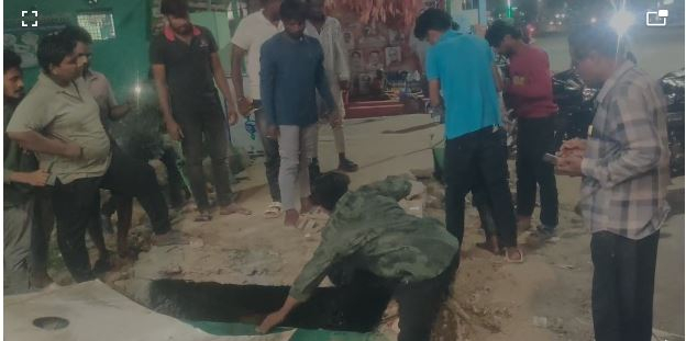 బస్సు వెళ్లిపోతుందన్న తొందరలో ముందున్న డ్రైనేజ్ మీద కాలు పెట్టి వేగంగా వెళ్లే క్రమంలో సమతుల్యం కోల్పోయిన వ్యక్తి నేరుగా సైడ్ కాలువలోకి పడిపోయాడు. క్షణాల వ్యవధిలో ప్రాణాపాయం సంభవించాల్సిన పరిస్థితి ఏర్పడింది. ఇక్కడ ఉన్న కొంతమంది యువకులు అపెద్దాయన్ని బయటికి లాగినారు అదృష్టవశాత్తూ తృటిలో ప్రాణాలు దక్కాయి.