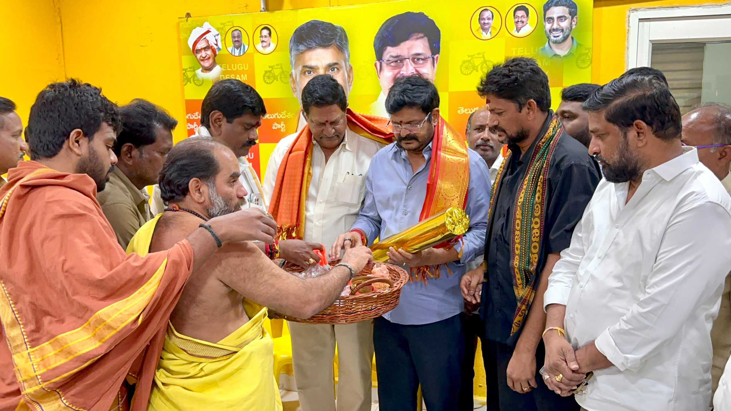 ఈ సందర్భంగా ఎమ్మెల్యే రాము , కూటమి నాయకులకు వేద పండితులు వేద ఆశీర్వచనాలు అందించి అమ్మవారి కంకణాలు కట్టి ప్రసాదం అందించారు.