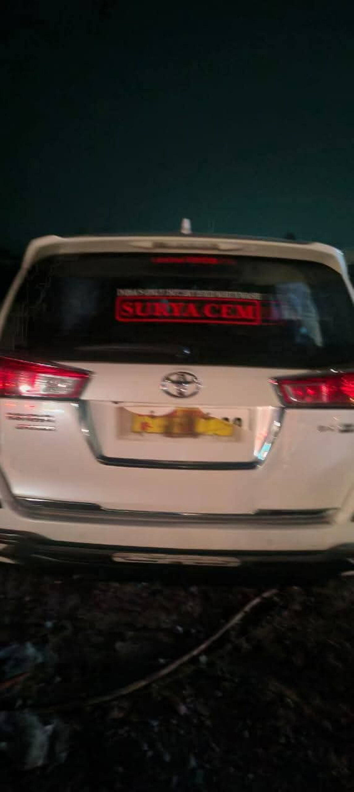 సూర్యcem” అని రాసి ఉన్న టయోటా ఇన్నోవా క్రిష్టా కారు, ద్విచక్ర వాహనంపై వెళ్తున్న పావులూరు సురేష్ బాబును ఢీకొట్టింది.