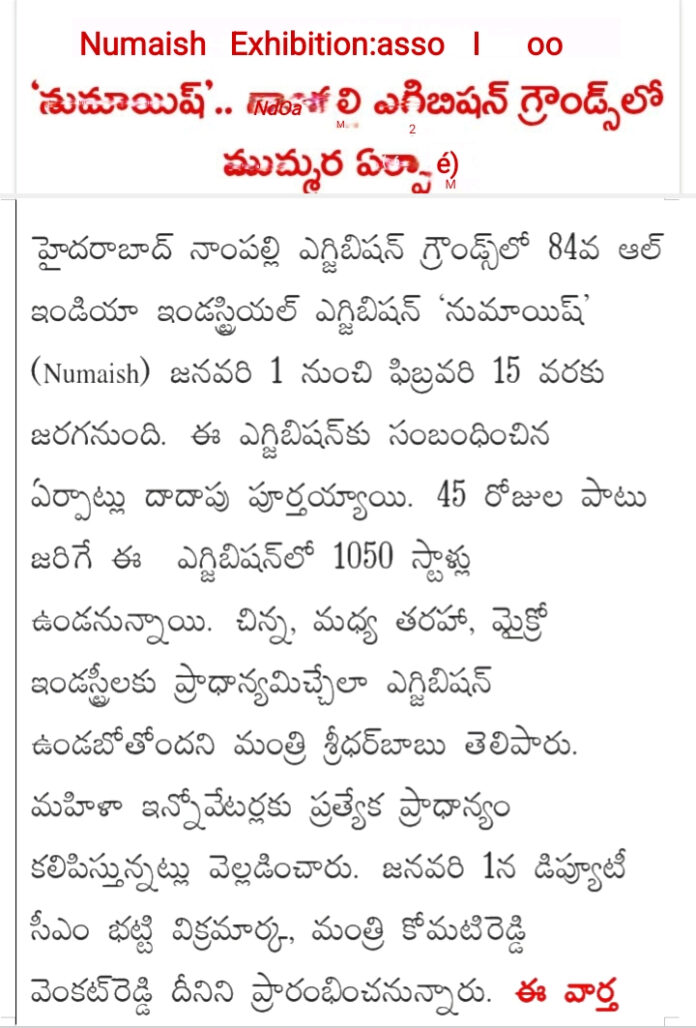 HomeSouth ZoneTelanganaExhibition Telangana Exhibition By Bharat Aawaz 30 December 2025 0 0 Share FacebookTwitterWhatsAppLinkedinReddItPrintTelegramCopy URL Follow Us Follow Us From January 1st 2026 exhibition opening. Tags#Bharataawaz#Exhibition#Hyderabad#ఈవెంట్#కళా ప్రదర్శన Share FacebookTwitterWhatsAppLinkedinReddItPrintTelegramCopy URL Previous articleహోంమంత్రి అనితను నిలదీసిన వైయస్సార్సీపీ ఆర్టీఐ విభాగం|Next articleచిత్తూరు కలెక్టర్ కార్యాలయంలో ప్రజాదర్బార్ | Bharat Aawazhttps://bharataawaz.com RELATED ARTICLES Telangana ఫ్యూచర్ సిటీని ప్రత్యేక కమిషనరేట్ గా మారుస్తూ ప్రభుత్వ ఉత్తర్వులు.| 30 December 2025 Telangana మంచినీరు, డ్రైనేజ్ సమస్యలపై వినతిపత్రం సమర్పణ | 30 December 2025 Telangana మండల సర్పంచుల ఫోరం అధ్యక్షురాలికి ఘన సన్మానం | 30 December 2025 LEAVE A REPLY Cancel replyLog in to leave a comment - Advertisment - Most Popular స్వర్ణం వార్డు-స్వర్ణ సచివాలయాలు | 30 December 2025 పోలీసు శిక్షణ కేంద్రంలో ఒప్పంద ఉద్యోగాలు | 30 December 2025 మే 17వ తేదీ జేఈఈ అడ్వాన్స్డ్ పరీక్ష !! 30 December 2025 ఘనం గా ముక్కోటి ఏకాదశి! | 30 December 2025 Load more Recent Comments