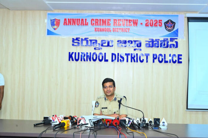 కర్నూలు జిల్లా లో  శాంతిభధ్రతలు అదుపులో ఉన్నాయని, నేరాలు అదుపు చేసేందుకు  పోలీసులు గట్టిగా పని చేస్తున్నారని   కర్నూలు  జిల్లా ఎస్పి శ్రీ విక్రాంత్ పాటిల్  ఐపిఎస్ గారు  మంగళవారం  జిల్లా పోలీసు కార్యాలయంలోని వ్యాస్ ఆడిటోరియంలో విలేకరల సమావేశం నిర్వహించి  2025 నేర గణంకాల వివరాలను  వెల్లడించారు.