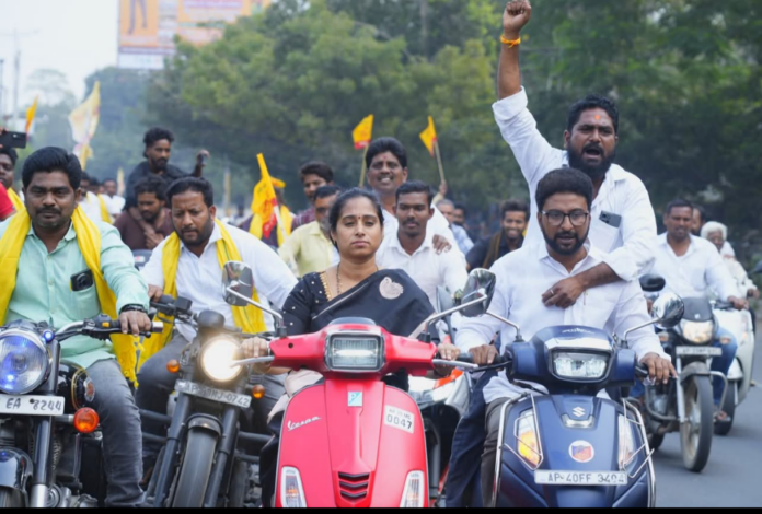 గుంటూరు నగర అభివృద్ధిలో కీలకమైన ఇన్నర్ రింగ్ రోడ్డు 3వ దశ శంకుస్థాపన కార్యక్రమానికి గుంటూరు పశ్చిమ నియోజకవర్గ ఎమ్మెల్యే శ్రీమతి గళ్ళా మాధవి గారు నియోజకవర్గ టీడీపీ కార్యాలయం నుండి భారీ బైక్ ర్యాలీతో పాల్గొన్నారు. ఈ కార్యక్రమంలో పార్టీ నాయకులు, కార్యకర్తలు, అభిమానులు పెద్ద సంఖ్యలో పాల్గొని ర్యాలీని విజయవంతం చేశారు.