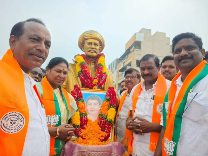 సావిత్రిబాయి పూలే గారి జయంతి సందర్భంగా బాపట్ల జిల్లా బిజెపి అధ్యక్షులు చీరాల నియోజకవర్గం ఇంచార్జ్ అరవపల్లి కుమార్ గారు, చీరాలలో ఎమ్మెల్సీ పోతుల సునీత గారు ఆధ్వర్యంలో మహాత్మ జ్యోతిరావు పూలే గారికి మరియు సావిత్రిబాయి పూలే గారికి పూలదండ వేసి ఘన నివాళులు అర్పించిన బాపట్ల జిల్లా ,చీరాల బిజెపి నాయకులు.
