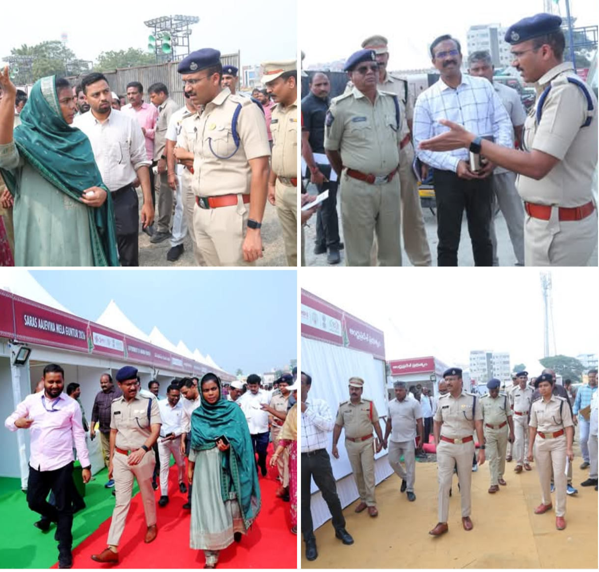 వీవీఐపీ గారు సందర్శించనున్న స్టాళ్లను పరిశీలించి, ఆయా ప్రాంతాల్లో చేపట్టవలసిన భద్రతా చర్యలు మరియు పోలీస్ బందోబస్తు ఏర్పాట్లపై అధికారులతో చర్చించారు.