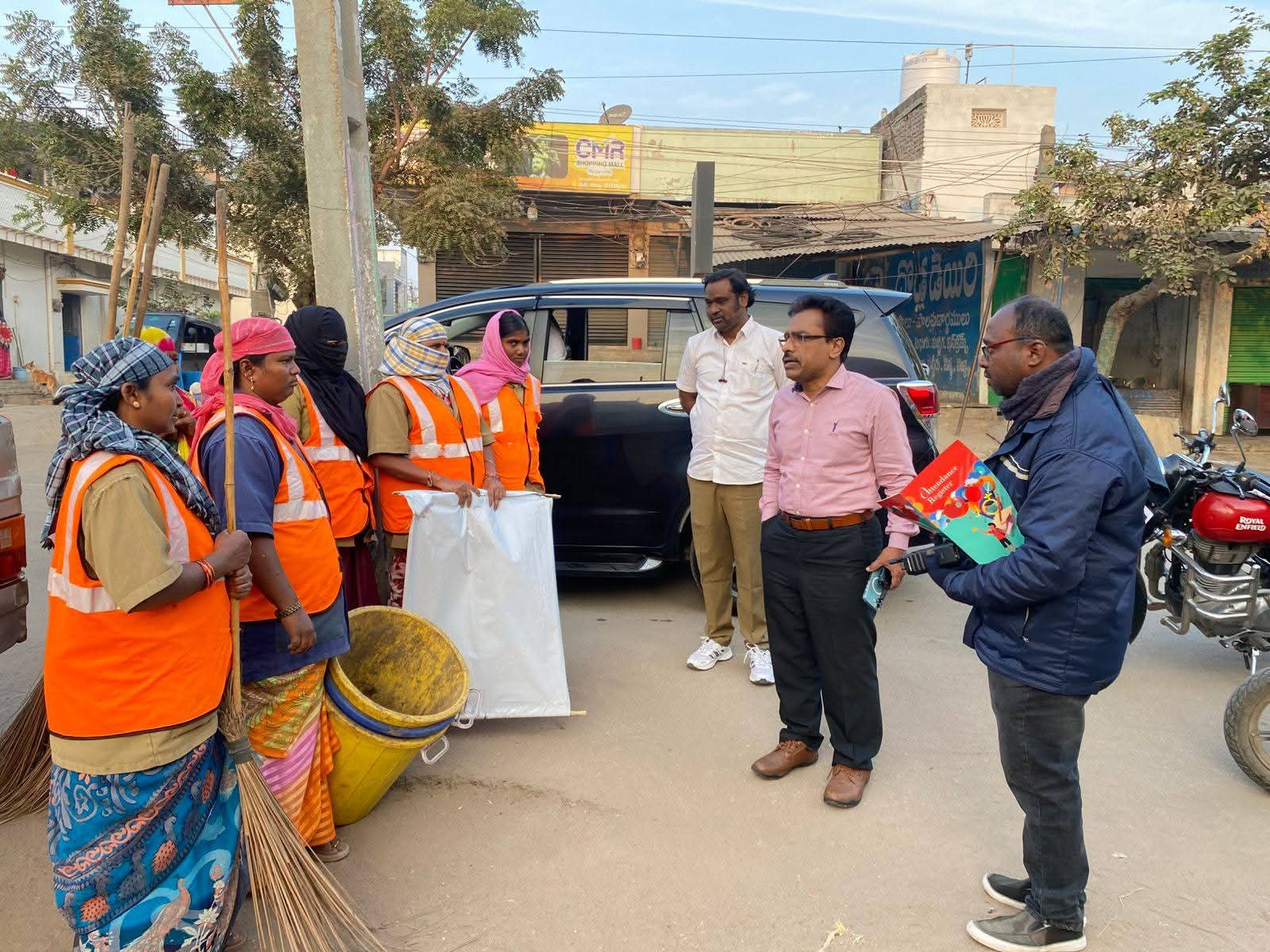 శుక్రవారం కల్లూరు, ముజఫర్నగర్, బళ్లారి చౌరస్తా, వెంకటరమణ కాలనీ ప్రాంతాల్లో పారిశుద్ధ్య పనులను పరిశీలించిన కమిషనర్, ముజఫర్నగర్ వద్ద కార్మికులతో కాసేపు మాట్లాడారు. పారిశుద్ధ్య పనుల్లో ఎదురవుతున్న సమస్యలు, ప్రజల సహకారం, వేతనాల అంశాలపై వివరాలు అడిగి తెలుసుకున్నారు. కార్మికులు సూచించిన అంశాలను విన్నా కమిషనర్, వాటి పరిష్కారానికి తగిన చర్యలు తీసుకుంటామని భరోసా ఇచ్చారు.ఈ సందర్భంగా కమిషనర్ మాట్లాడుతూ.