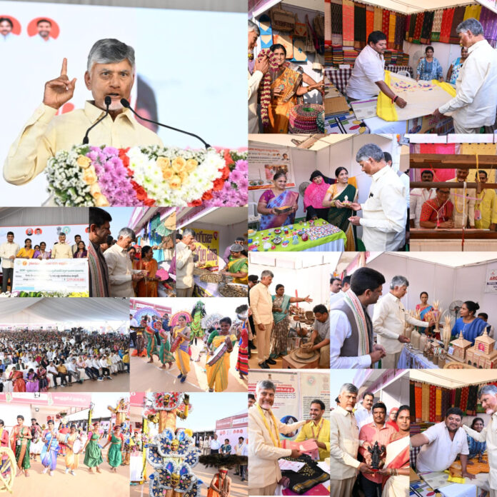 అంతకుముందు స్త్రీ నిధి పథకం కింద డ్వాక్రా సంఘాలకు రుణంగా రూ.1,375 కోట్ల చెక్కును సీఎం అందించారు. సెర్ప్ నుంచి రూ.2171 కోట్లను పొదుపు సంఘాలకు రుణంగా అందించారు. చేనేత వస్త్ర స్టాళ్లను పరిశీలించిన అనంతరం ముఖ్యమంత్రి తన సతీమణి భువనేశ్వరికి చీరను కొనుగోలు చేశారు. భర్తకు ఆరోగ్యం బాగోలేదని తన దృష్టికి తీసుకొచ్చిన పొదుపు మహిళకు సీఎం సహాయ నిధి నుంచి రూ.6 లక్షలు ముఖ్యమంత్రి చంద్రబాబు మంజూరు చేశారు.