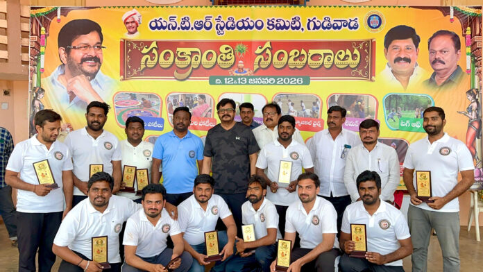 గుడివాడ ఎన్టీఆర్ స్టేడియం ప్రాంగణంలో పురపాలక సంఘం ఆధ్వర్యంలో సంక్రాంతి సంబరాలు ఘనంగా జరిగాయి. వేడుకల్లో భాగంగా మున్సిపల్ ఉద్యోగులు మరియు సచివాలయ సిబ్బంది వివిధ క్రీడా సాంస్కృతిక కార్యక్రమాల్లో ఉత్సాహంగా పాల్గొన్నారు. చివరి రోజు పోటీల్లో పాల్గొన్న గుడివాడ ఎమ్మెల్యే వెనిగండ్ల రాము… వివిధ క్రీడా పోటీల్లో స్వయంగా పాల్గొని ఉద్యోగులను ఉత్సాహపరిచారు. మున్సిపల్ కమిషనర్ మనోహర్ టీం సభ్యులతో కలిసి… ఎమ్మెల్యే రాము టీం సభ్యులు ఫ్రెండ్లీ క్రికెట్ మ్యాచ్ ఆడారు.
