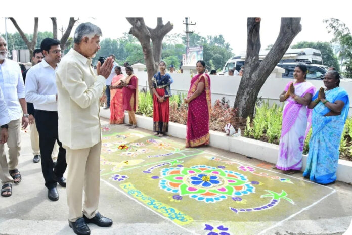 సంక్రాంతి సంబరాల్లో భాగంగా ముగ్గుల పోటీలు, సంప్రదాయ క్రీడల నిర్వహించగా.. పోటీల్లో గెలుపొందిన విజేతలకు బహుమతులు అందజేసారు సిఎం చంద్రబాబు, నారా భువనేశ్వరి..