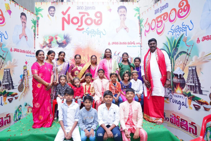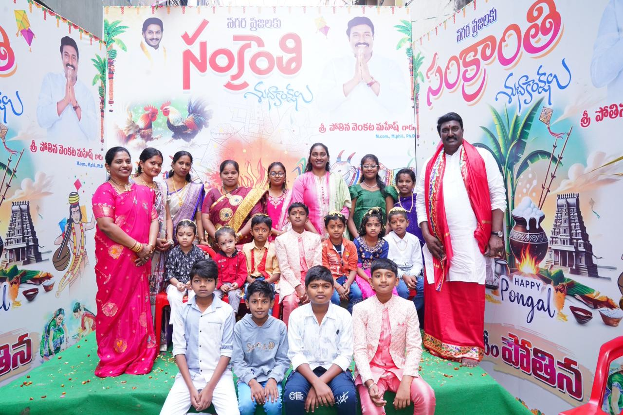 చిన్నారులకు భోగి పండ్లు తో దీవించి వారిని ఆశీర్వదించిన వైకాపా నేత పోతిన వెంకట మహేష్ దంపతులు