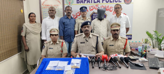 పగటిపూట ఇంటి దొంగతనం కేసును ప్రత్యేకంగా పరిగణించిన బాపట్ల జిల్లా ఎస్పీ శ్రీ బి.ఉమామహేశ్వర్ ఐపిఎస్ గారు చీరాల డిఎస్పి ఎండి.మోయిన్ గారి నేతృత్వంలో ప్రత్యేక బృందాన్ని ఏర్పాటు చేసి కేసుని అన్ని కోణాల్లో దర్యాప్తు ప్రారంభించారు, సాంకేతిక పరిజ్ఞానాన్ని ఉపయోగించుకొని ముద్దాయిని గుర్తించి సరైన సమాచారం ద్వారా ది:16.01.2026 వ తేది న 07:30 గంటల సమయంలో, చీరాల రైల్వే స్టేషన్ వెనుక ప్రాంతంలో ముద్దాయి ఉన్నట్లు సమాచారం మేరకు చీరాల వన్ టౌన్ WSI అయిన G. రాజ్యలక్ష్మి గారు తన సిబ్బంది సహాయంతో, ముద్దాయిని దొంగిలించిన సొత్తుతో సహా పట్టుకున్నారు.
