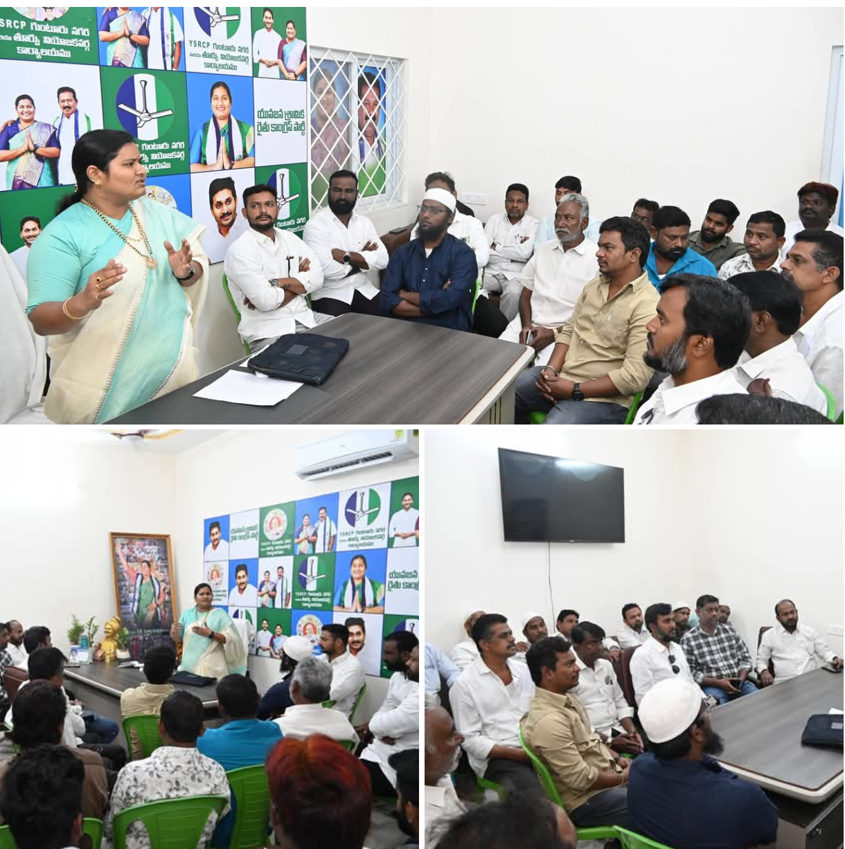 ఈరోజు గుంటూరు నగర మరియు తూర్పు నియోజకవర్గ వైఎస్సార్సీపీ కార్యాలయంలో మైనారిటీ నాయకులతో విస్తృత స్థాయి సమావేశం నిర్వహించారు. మన గుంటూరు నగర అధ్యక్షురాలు మరియు తూర్పు నియోజకవర్గ ఇన్చార్జ్ శ్రీమతి షేక్ నూరి ఫాతిమా గారి ఆధ్వర్యంలో జరిగిన ఈ సమావేశంలో మంగళగిరిలోని అంజుమన్ ఆస్తుల పరిరక్షణపై కీలక నిర్ణయం తీసుకున్నారు.