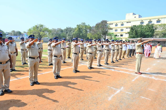 కర్నూలు సిటీ :కర్నూలు జిల్లా….జిల్లా పోలీసు కార్యాలయ సిబ్బందిచే జాతీయ ఓటర్ల దినోత్సవం ప్రతిజ్ఞ …జాతీయ ఓటర్ల దినోత్సవం పురస్కరించుకొని కర్నూలు ఎస్పీ శ్రీ విక్రాంత్ పాటిల్ ఐపియస్ గారి ఆదేశాల మేరకు ఎఆర్ అడిషనల్ ఎస్పీ శ్రీ కృష్ణమోహన్ గారు జిల్లా పోలీసు కార్యాలయంలోని పరేడ్ మైదానంలో పోలీసు అధికారులు.