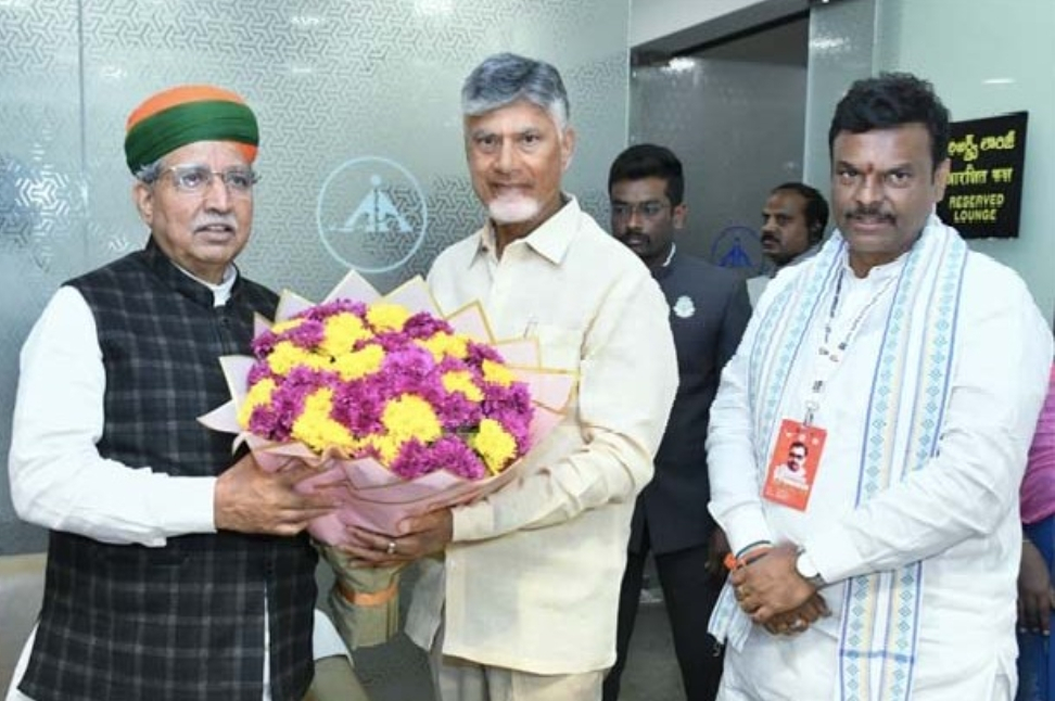 విమానాశ్రయంలోని వీఐపీ లాంజ్లో కేంద్ర మంత్రి అర్జున్ మేఘవాల్ను మర్యాదపూర్వకంగా కలిసిన సీఎం చంద్రబాబు