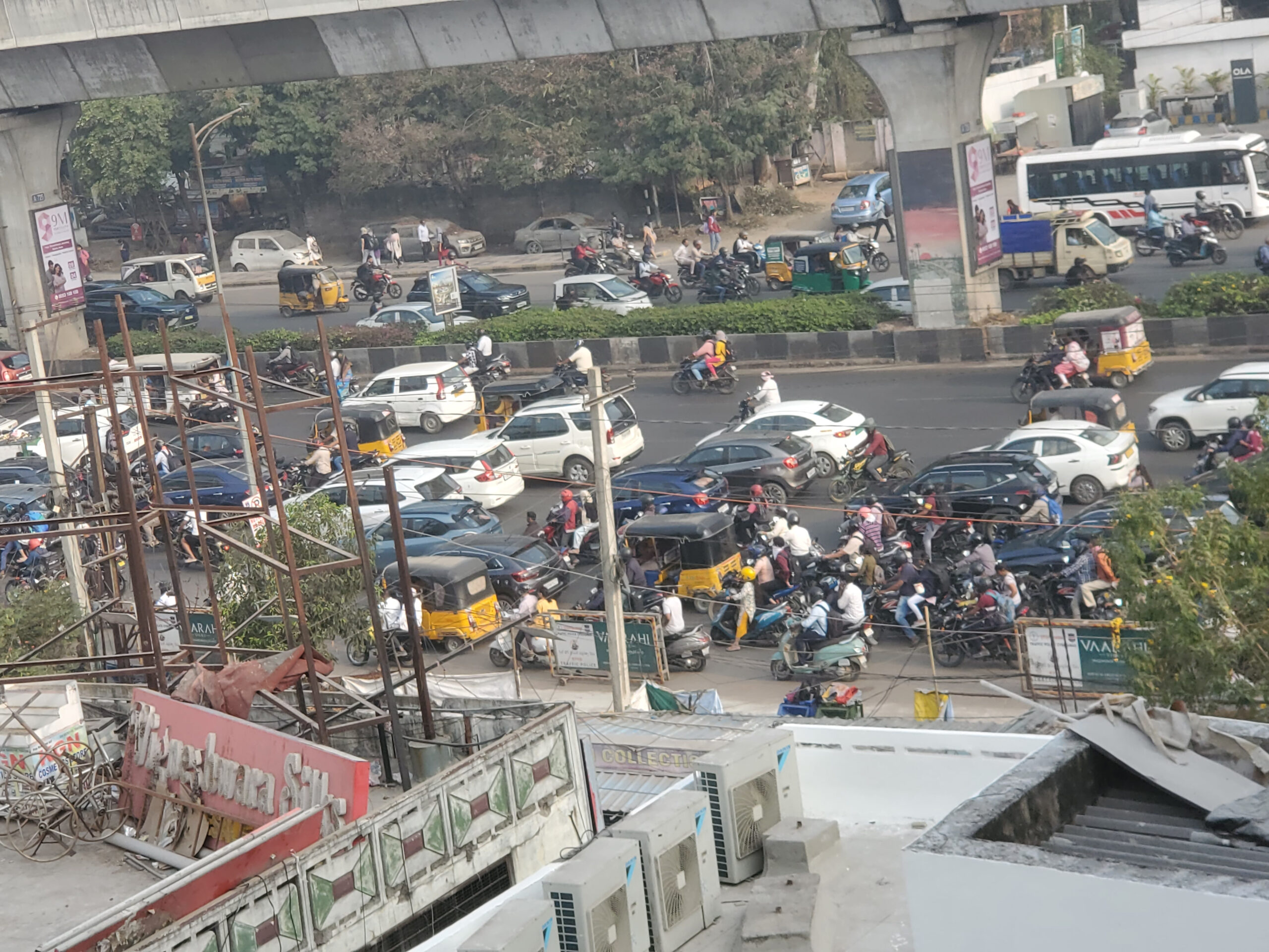 Heavy Traffic Jams towards jntu – Hitech City Road