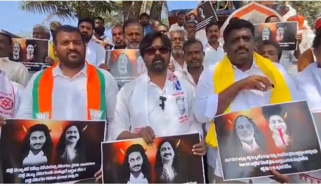 పుంగనూరు పట్టణంలోని శ్రీ కళ్యాణ వెంకటరమణ స్వామి ఆలయం వద్ద సోమవారం కూటమి నాయకులు కల్తీ నెయ్యి వ్యవహారంపై నిరసన తెలిపారు.
