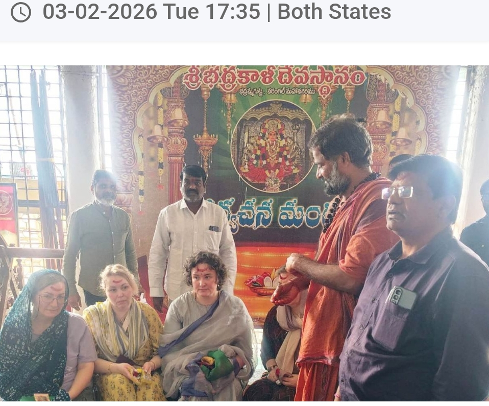 ఆంధ్రప్రదేశ్ ఉప ముఖ్యమంత్రి, ప్రముఖ నటుడు పవన్ కల్యాణ్ భార్య అన్నా లెజినోవా భద్రకాళి అమ్మవారిని దర్శించుకున్నారు. మంగళవారం వరంగల్ వచ్చిన ఆమె భద్రకాళి గుడికి వచ్చారు. అన్నా లెజినోవాకు ఆలయ ధర్మకర్తలు, పూజారులు ఘనస్వాగతం పలికారు.