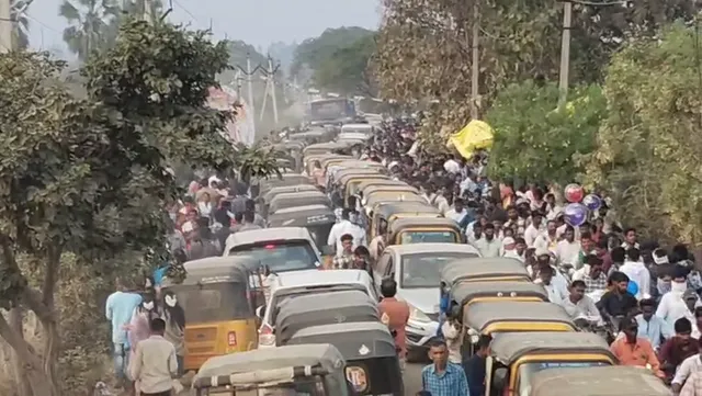 కోసం భారీ సంఖ్యలో భక్తులు తరలిరావడంతో రహదారులు కిక్కిరిసిపోయాయి. వాహనాల రద్దీ నియంత్రణలో పోలీస్ యంత్రాంగం నిస్సహాయ స్థితికి చేరింది. గంటల తరబడి వాహనాలు నిలిచిపోవడంతో ప్రయాణికులు, స్థానికులు తీవ్ర ఇబ్బందులు ఎదుర్కొన్నారు. భక్తుల రద్దీ కొనసాగుతుండటంతో ట్రాఫిక్ సమస్య మరింత ఉధృతమయ్యే అవకాశం ఉంది.