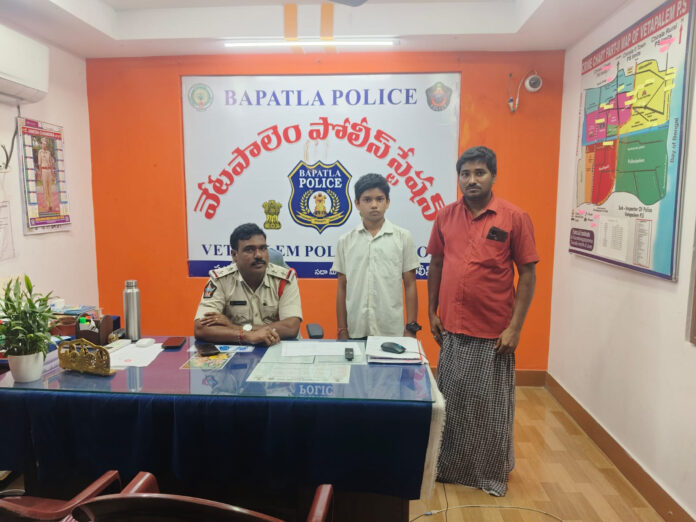 తప్పిపోయిన బాలుడు గుత్తి సిద్ధార్థ s/o అశోక్ బాబు age-12 yrs,devanga by caste, దంతంపేట నీ తప్పిపోయిన గంటలో చేదించిన వేటపాలెం si garu and staff