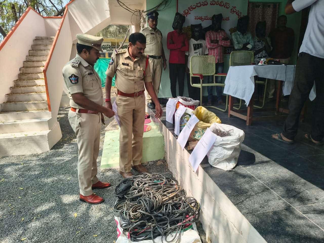 అయితే, చెడు వ్యసనాలకు బానిసలైన వీరు, తమ పని నుండి సరిపడా ఆదాయం రాకపోవడంతో ఒక గ్రూపుగా ఏర్పడ్డారు. గత రెండు నెలలుగా రాత్రి సమయాల్లో చుట్టుపక్కల గ్రామాల్లో తిరుగుతూ, రాగి వైర్లు దొంగిలించి, వాటిని అమ్ముకుని తమ చెడు వ్యసనాలను తీర్చుకునేందుకు ఈ దొంగతనాలను అలవాటు చేసుకున్నారు. ఈ కేసును అన్ని కోణాల్లో దర్యాప్తు చేసి ముద్దాయిలను గుర్తించి అరెస్టు చేయడం జరిగింది.