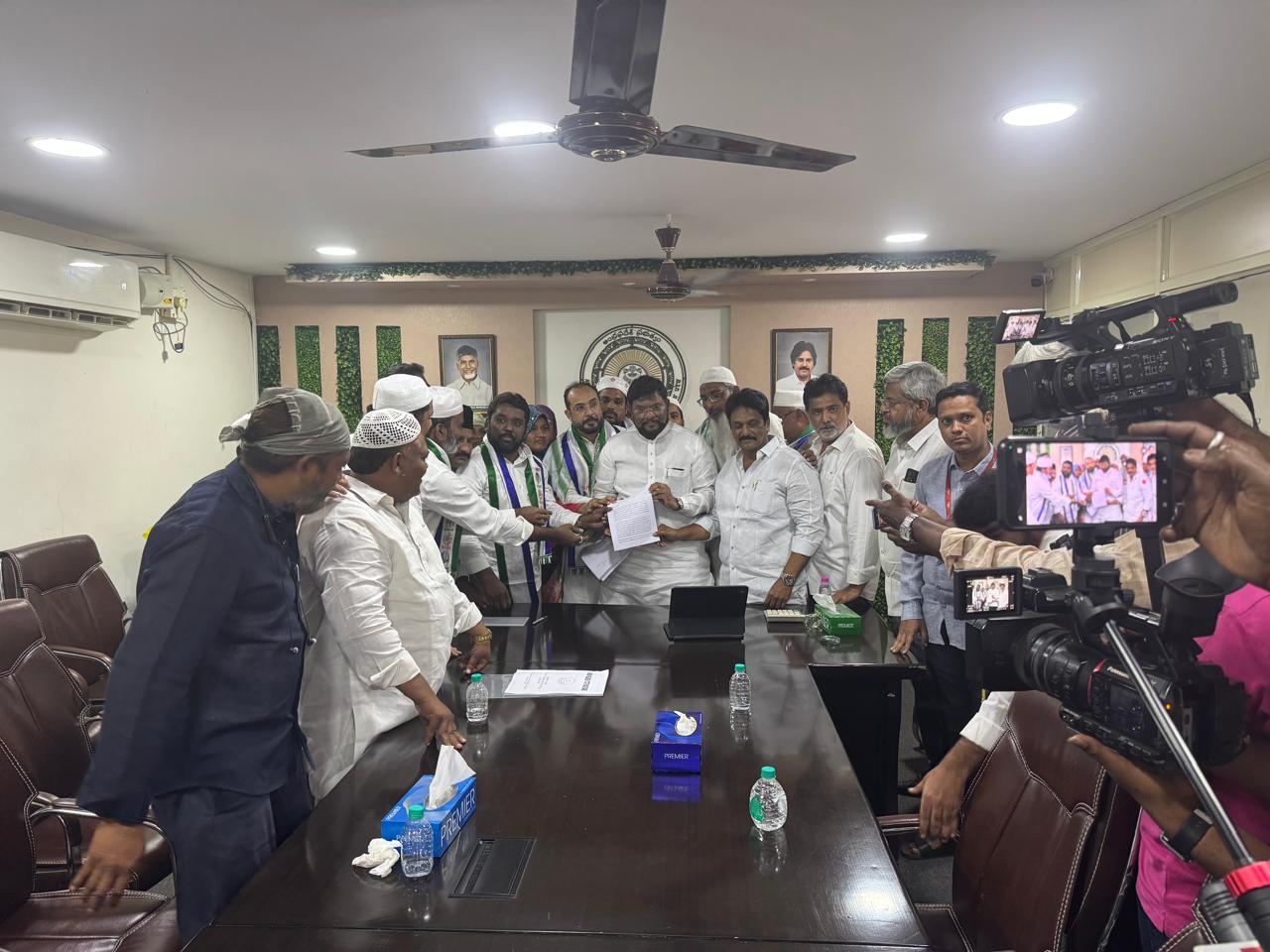 రాష్ట్రంలోని మైనారిటీ వక్ఫ్ బోర్డు ఆస్తులను కూటమి ప్రభుత్వం స్వాధీనం చేసుకోవడాన్ని వ్యతిరేకిస్తూ ఈరోజు విజయవాడలోని వక్ఫ్ బోర్డు రాష్ట్ర కార్యాలయం చైర్మన్ గారికి వినతి పత్రం అందచేసిన వైస్సార్సీపీ రాష్ట్ర ప్రధాన కార్యదర్శి షేక్. ఆసిఫ్ గారు, ఎమ్మెల్సీ రూహులా గారు.
