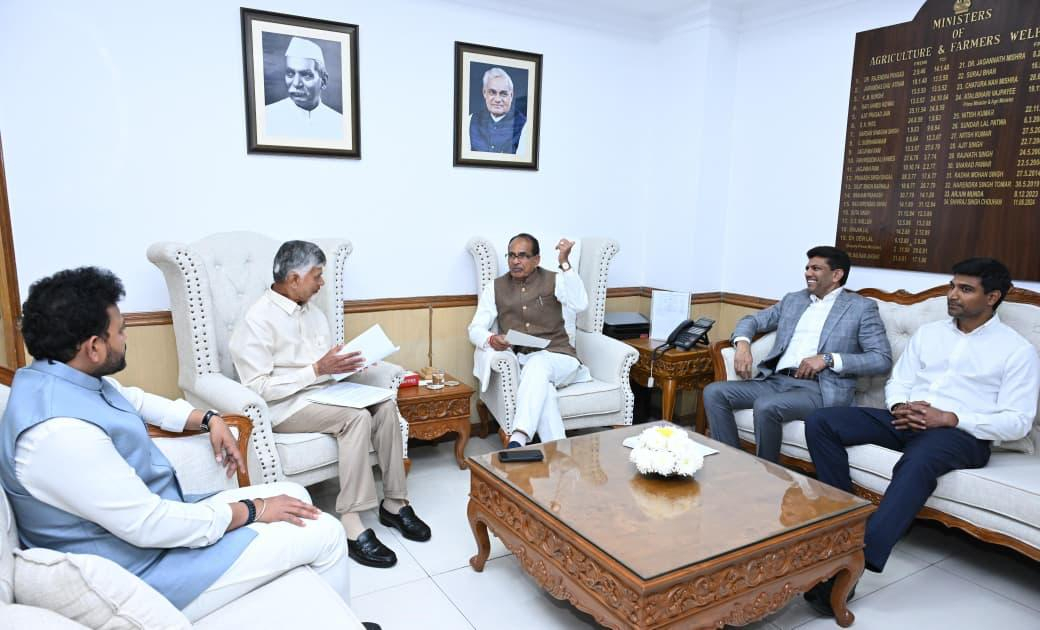 ముఖ్యమంత్రి చంద్రబాబు నాయుడు ఢిల్లీలో కేంద్ర మంత్రి శివరాజ్ సింగ్ చౌహన్తో భేటీ అయ్యారు. రాష్ట్రంలో సేంద్రీయ సాగు అభివృద్ధికి, పీఎం-ప్రణామం (PM-PRANAM) నిధుల విడుదలపై చర్చించారు.