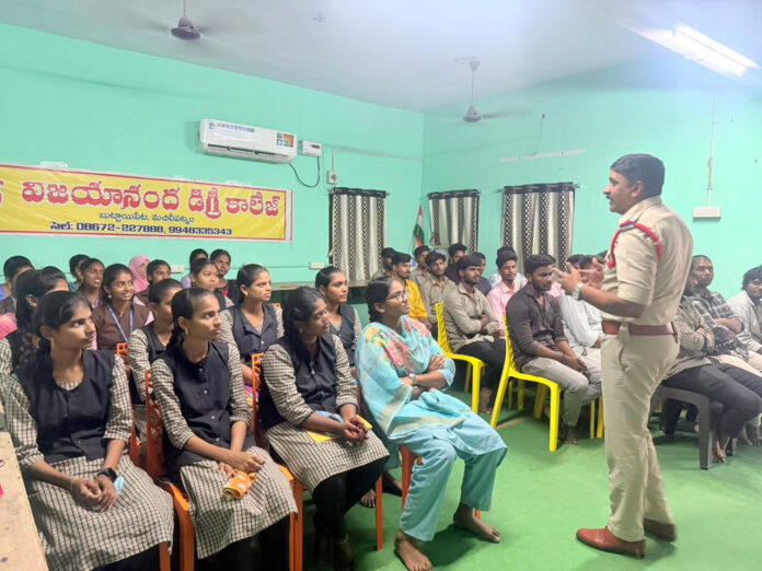 మచిలీపట్నంలోని విజయానంద డిగ్రీ కళాశాలలో కృష్ణా జిల్లా పోలీసులు విద్యార్థులకు రక్షణ చట్టాలపై అవగాహన కల్పించారు.